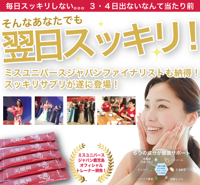 6つの厳選成分がスッキリをサポート。ミスユニバースジャパン鹿児島オフィシャルトレーナー漢方薬剤師が開発!!